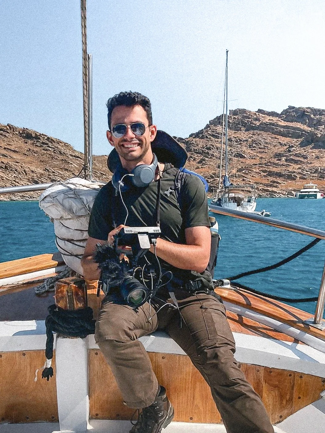 At sea off the coast of Paros, Greece filming a documentary alongside my master’s thesis